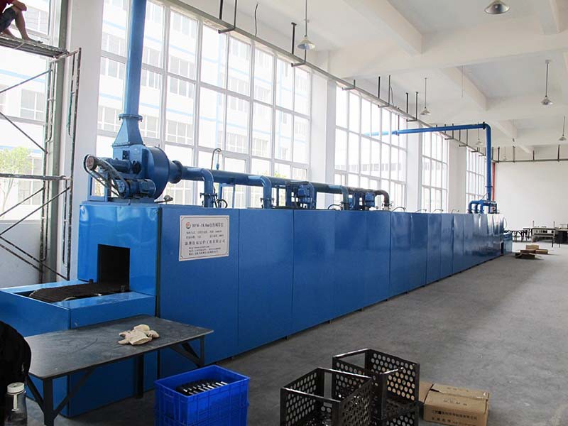 网带窑炉属于连续性窑炉,传动方式为金属网带,金属网带由托辊或托板承载,主要用于陶瓷玻璃烤花、玻璃热弯成型、玻璃退火、催化剂再生、粉体材料的干燥、焙烧。按加热方式可分为燃气网带窑和电热网带窑两类。网带根据温度选用不同材质的不锈钢材料,受金属材质所限,一般网带窑使用温度<900℃。主要适用于特种陶瓷、结构陶瓷、电子陶瓷、功能陶瓷、磁性材料、电子粉体、电子器件、蜂窝陶瓷等领域,具有质量稳定可靠,炉温均匀,得到客户认可,特别是节约能源做了大量工作。